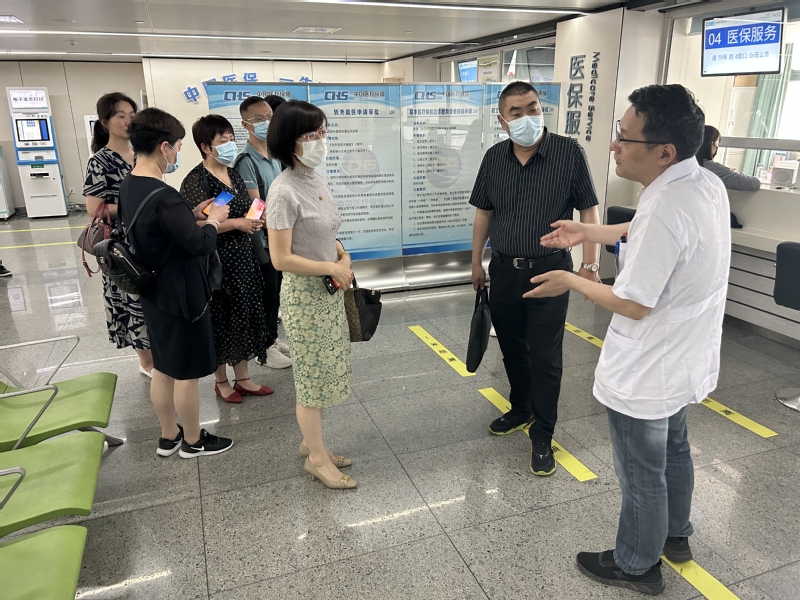 调研人员先后观摩了我院药房双通道药品专用配置窗口和“医保服务中心-15分钟医保服务圈”建设情况、人员配置情况、业务开展情况等相关内容。