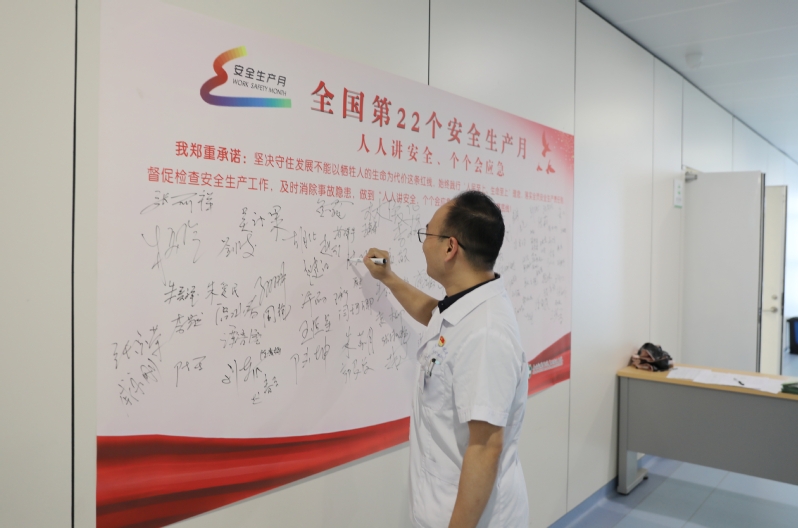会上,学习了新安全生产法,观看了安全生产警示片,党支部书记、科室代表作表态发言。会前,参会人员在“人人讲安全 个个会应急”安全承诺签名墙上郑重签名承诺,营造了“人人讲安全,事事为安全,时时想安全,处处要安全”的安全文化氛围。