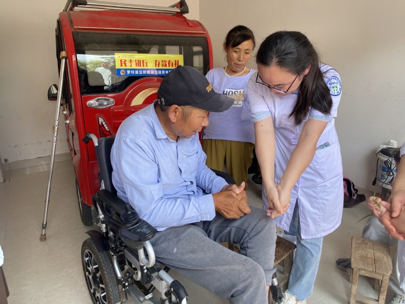 内科第一支部书记、风湿免疫科主任李春香带领同志们仔细询问老人们的身体情况、生活情况,了解老人们的需求和愿望,为老人们送上端午节祝福,同时送去慰问金、米、油、牛奶等慰问品。李春香和心内科张义耐心询问他们的健康状况,通过问诊、听诊、查看既往病历,针对高血糖、高血压、冠心病、脑梗等问题给予专业的指导和建议;心内科葛静专门查看了老人们下肢是否水肿,并给予健康指导;神经内科陆姗姗为老人们做好用药指导及康复知识宣教;内分泌科陈环环为老人们监测血糖、血压。