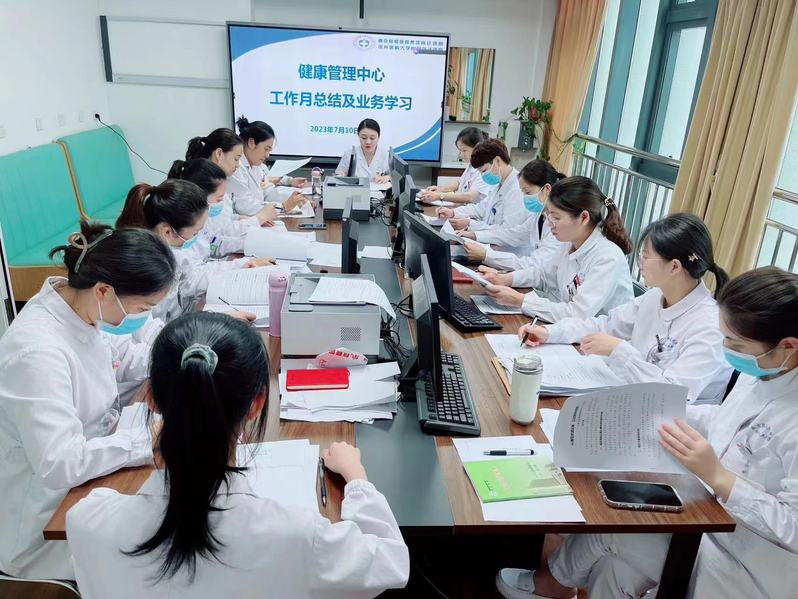 7月10日下午,健康管理中心在MDT会议室召开月度总结及业务学习会,本次会议由健康管理中心主任张煦颖主持,主任助理孙玉玲、各组组长及组员参加会议。